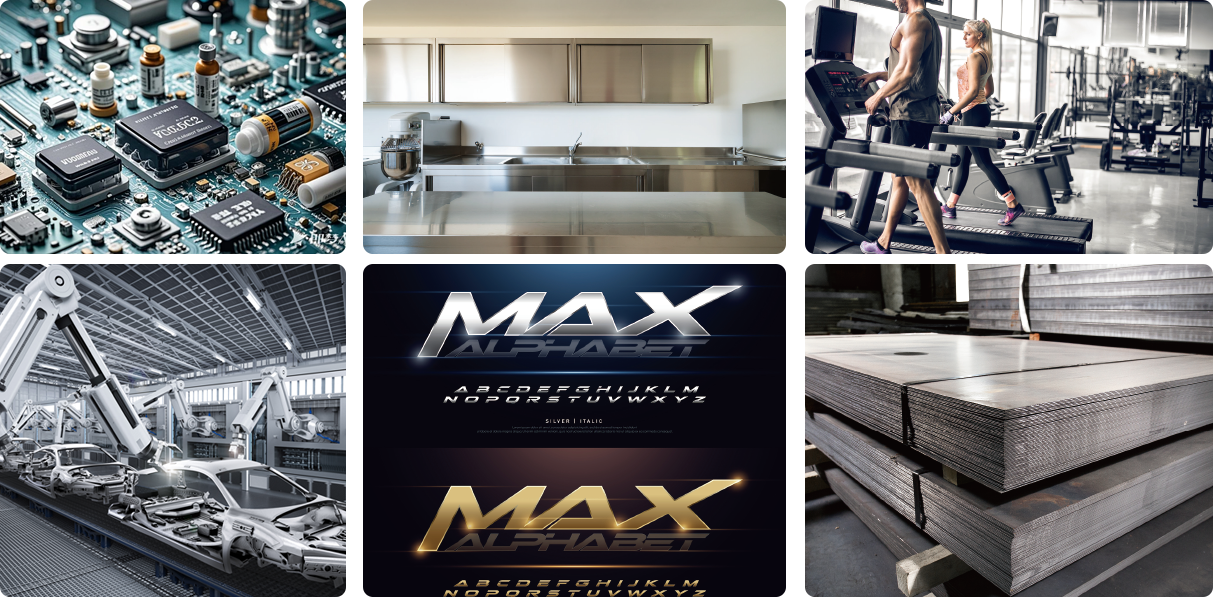 Electronic component, advertising, automotive manufacturing, elevator manufacturing, kitchen cabinets,fitness equipment